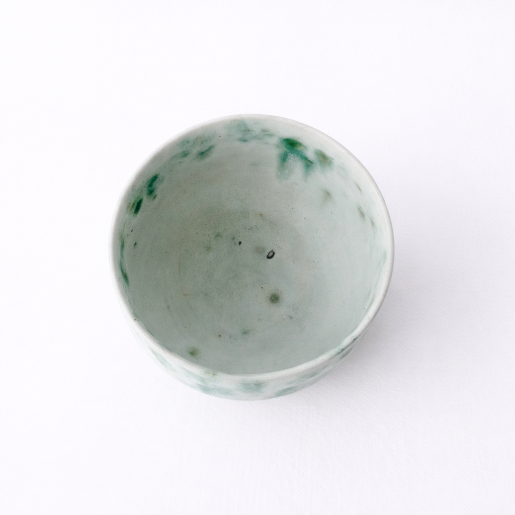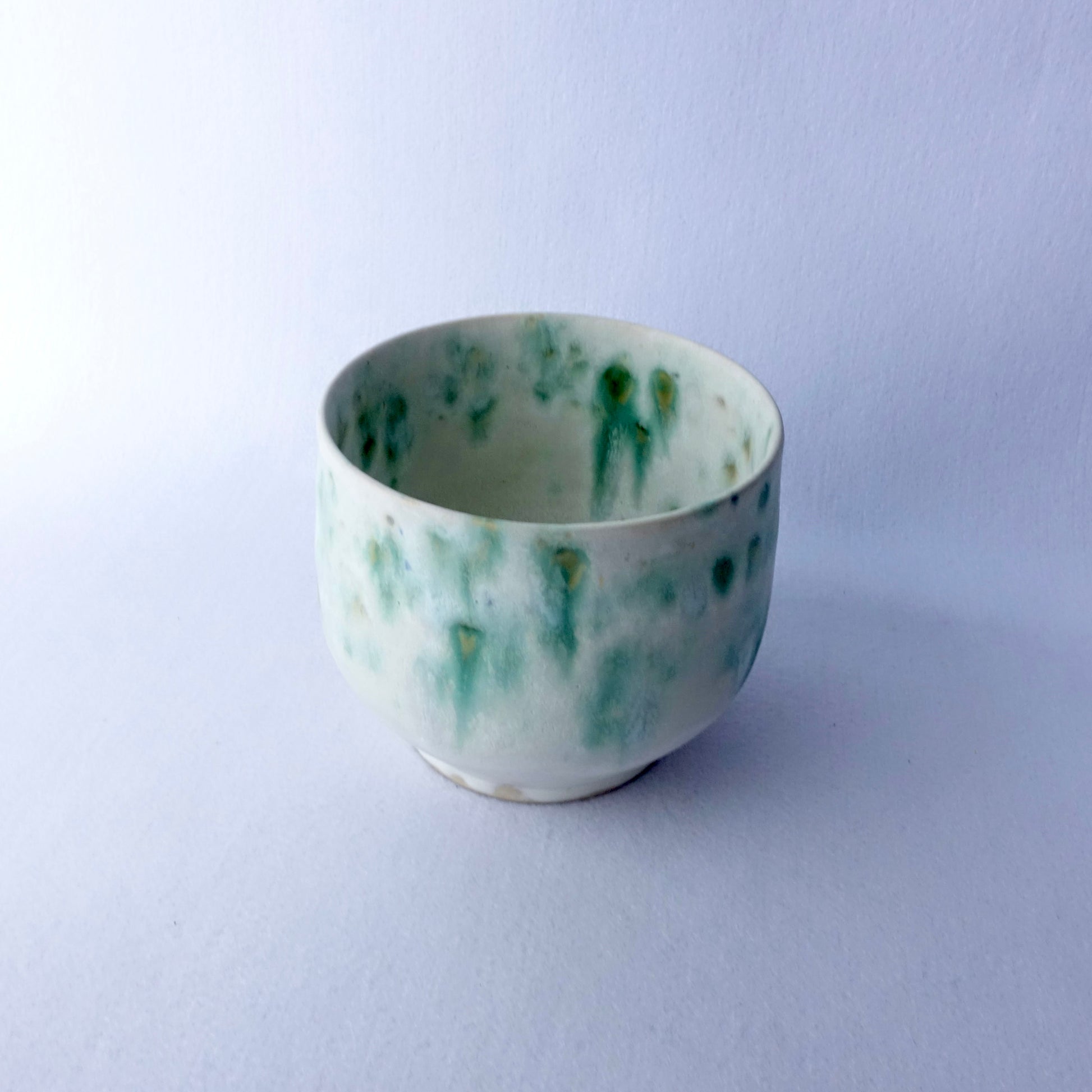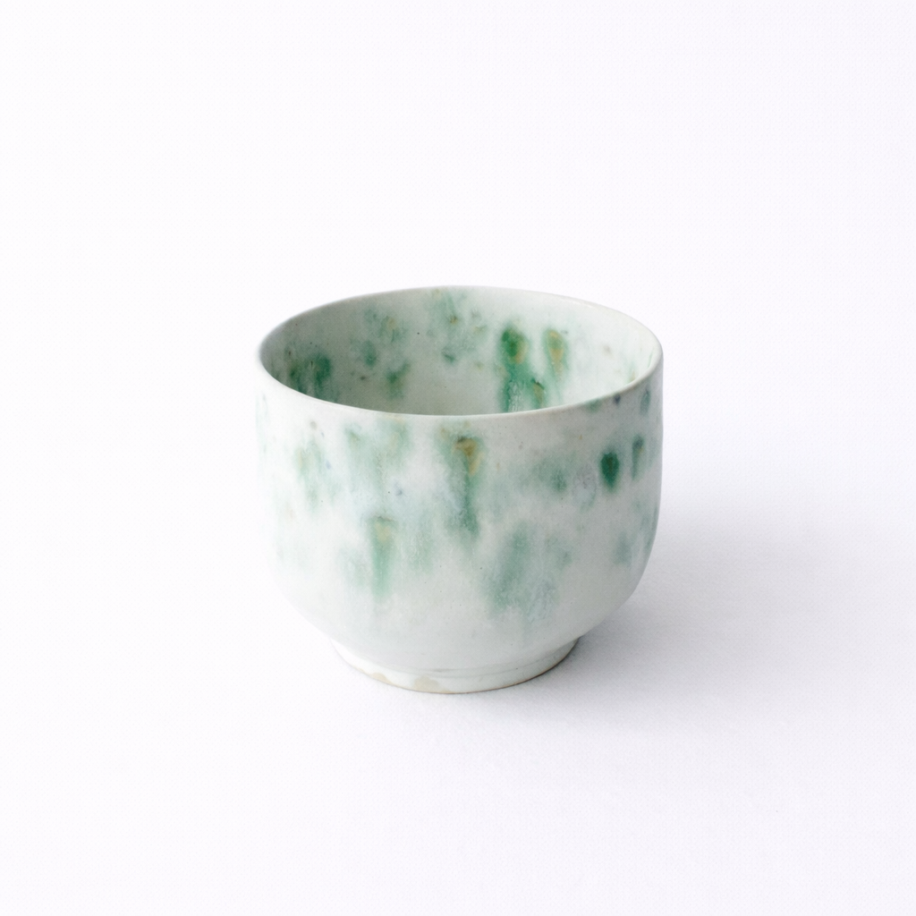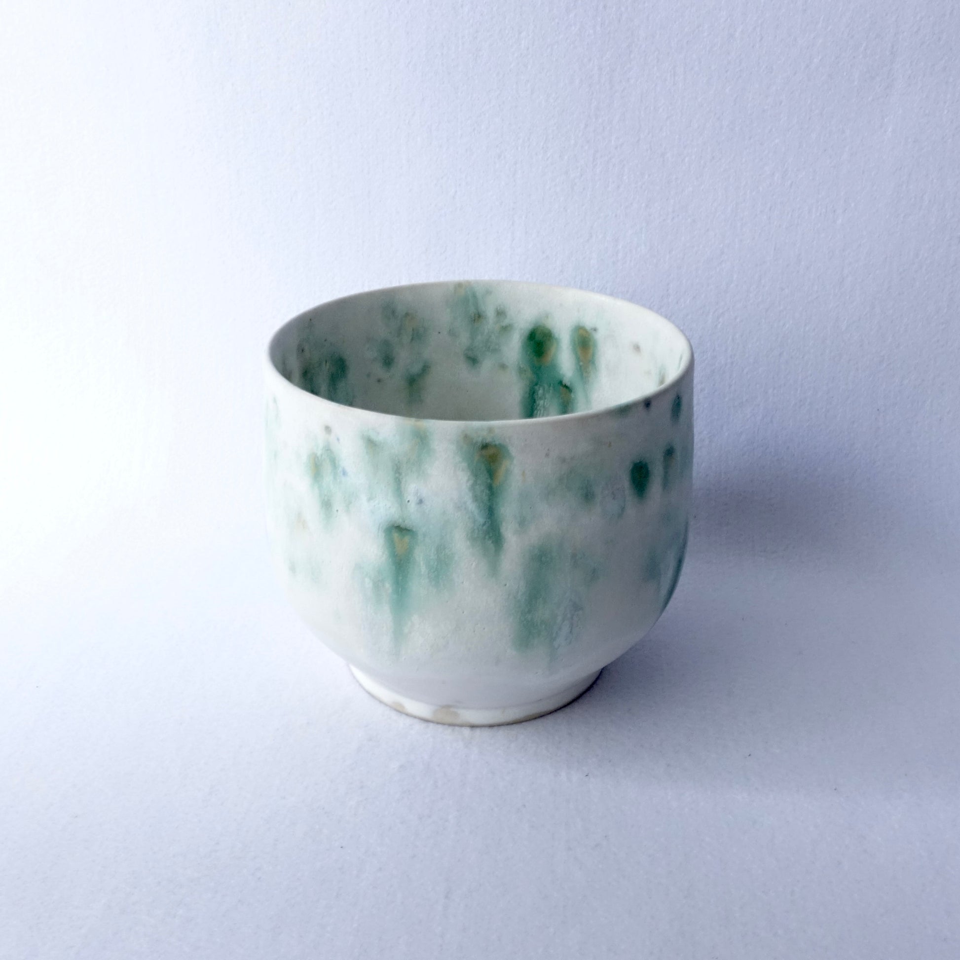 En myk og levende glasur i grønntoner gir denne håndlagde potten et naturlig og rolig uttrykk. Den organiske formen og den lyse bunnfargen lar plantene komme i fokus, samtidig som potten tilfører rommet et unikt preg. Passer like fint til grønne planter som til en bukett blomster.